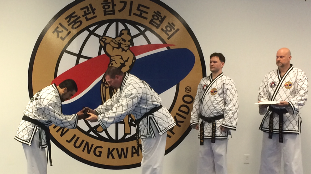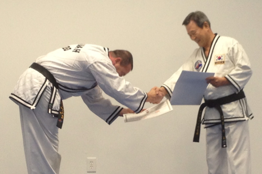 Grandmaster Rhoades' promotion by Grandmaster Kim to 8th dan Jin Jung Kwan Hapkido